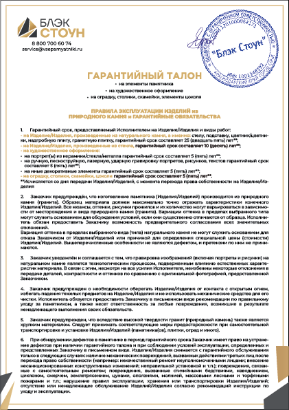 Какие гарантии предоставляет компания ВсеПамятники.ру